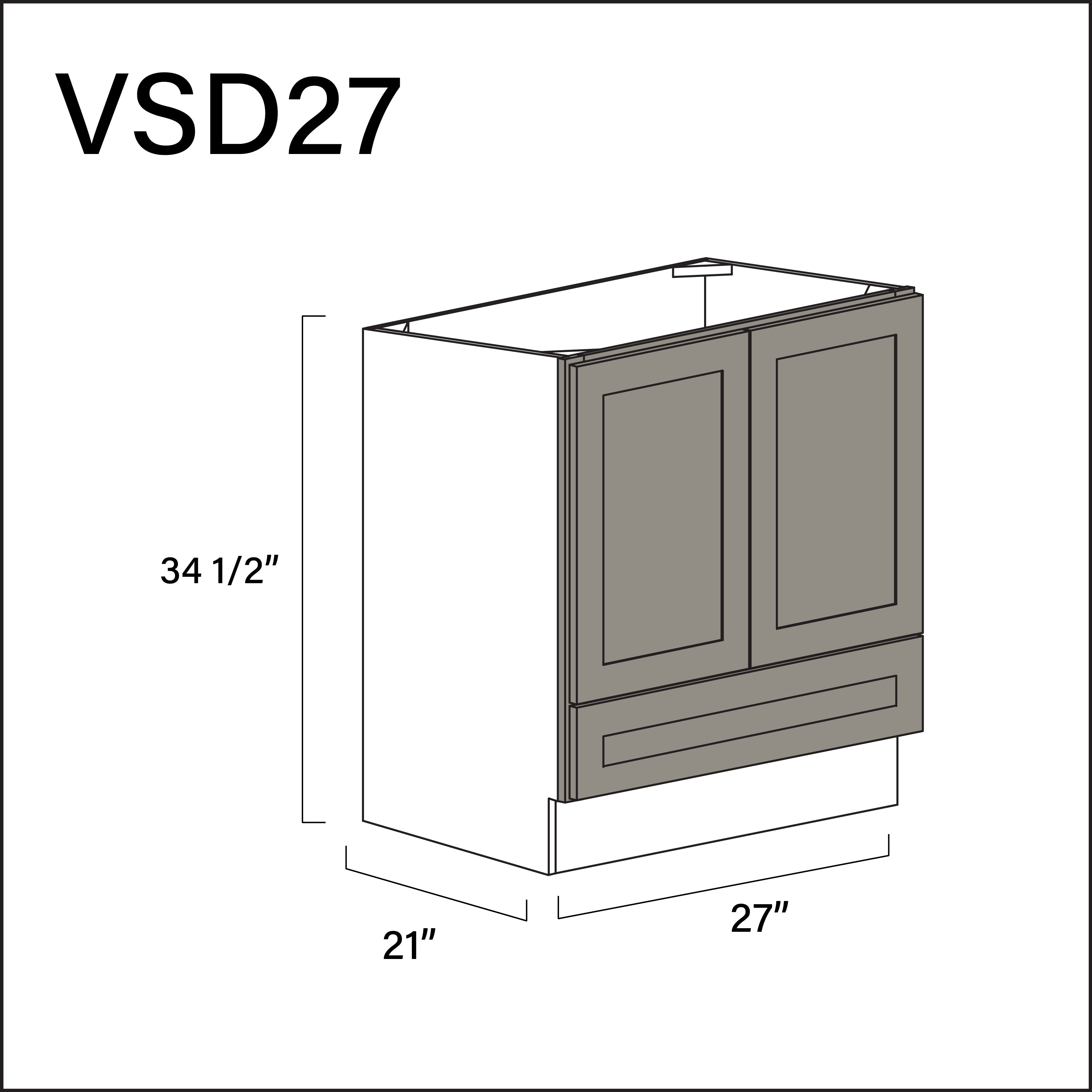 Dark Taupe Shaker Bottom Drawer Vanity Sink Base Cabinet - 27" W x 34.5" H x 21" D