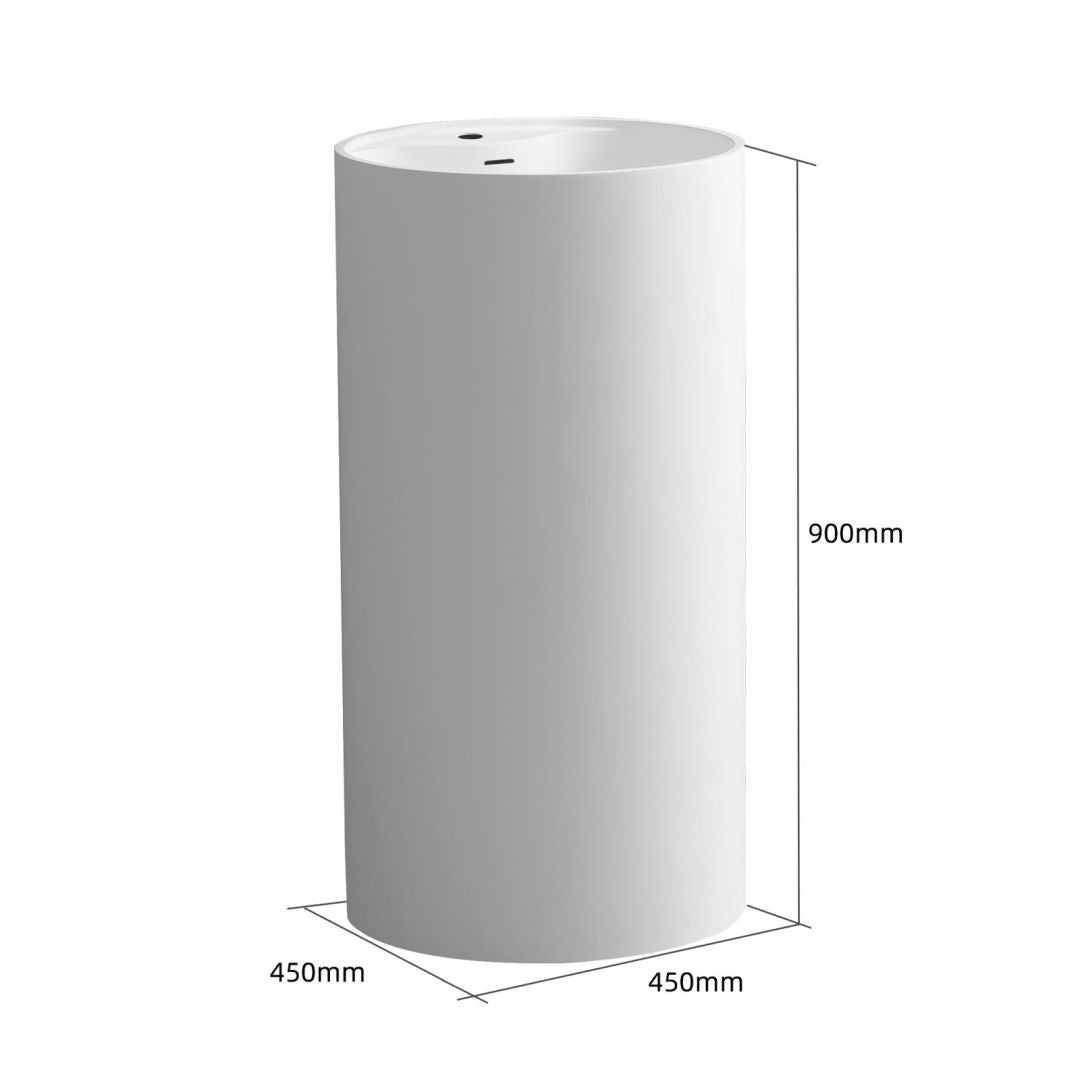 Arba 35" Tall Cylindrical Solid Surface Basin Pedestal Sink in Matte White