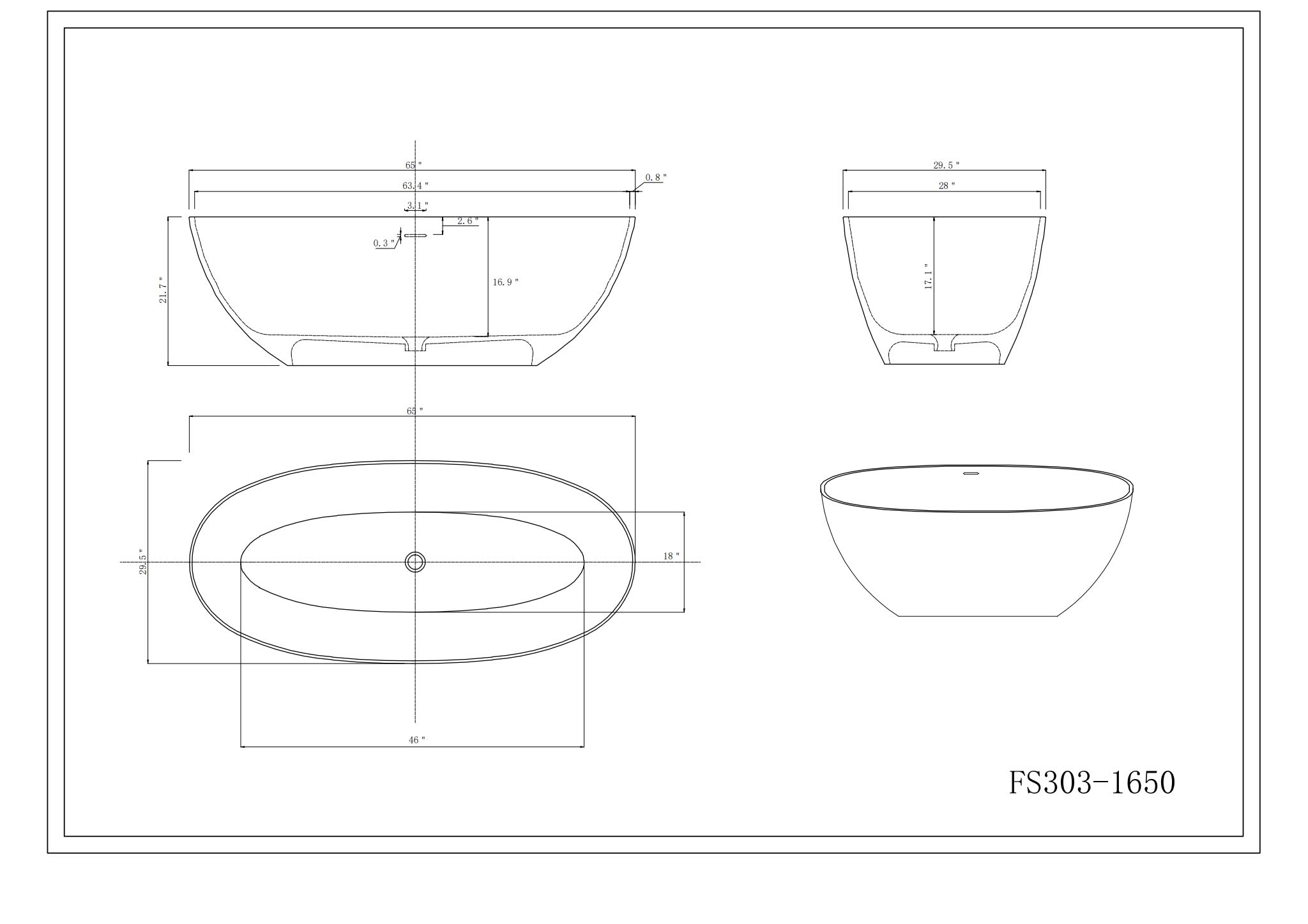 Arba 65" x 30" Freestanding Solid Surface Bathtub in Matte White