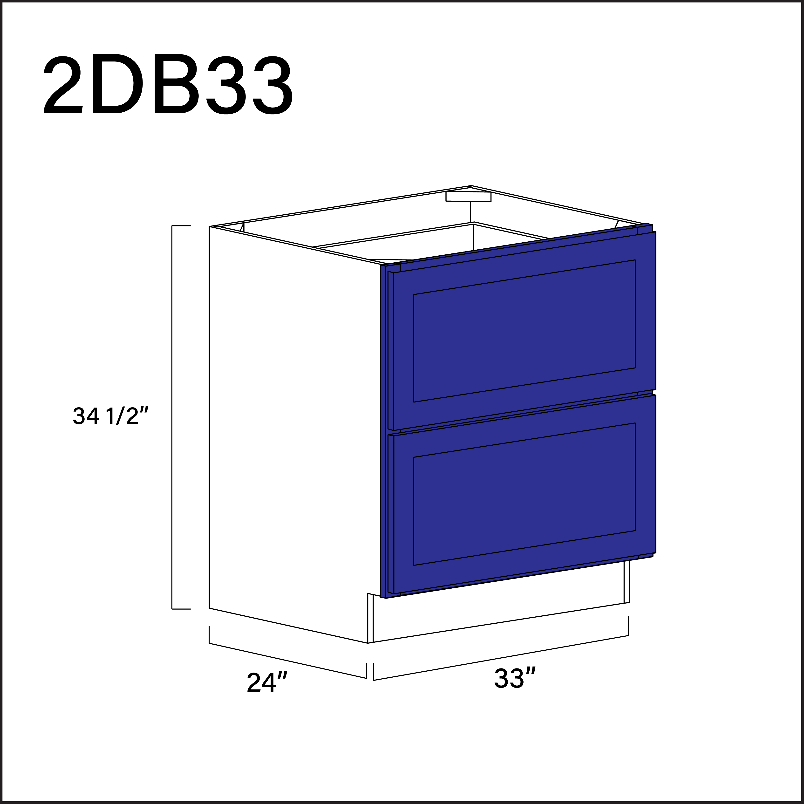 Royal Blue Shaker 2 Drawer Kitchen Base Cabinet - 33" W x 34.5" H x 24" D