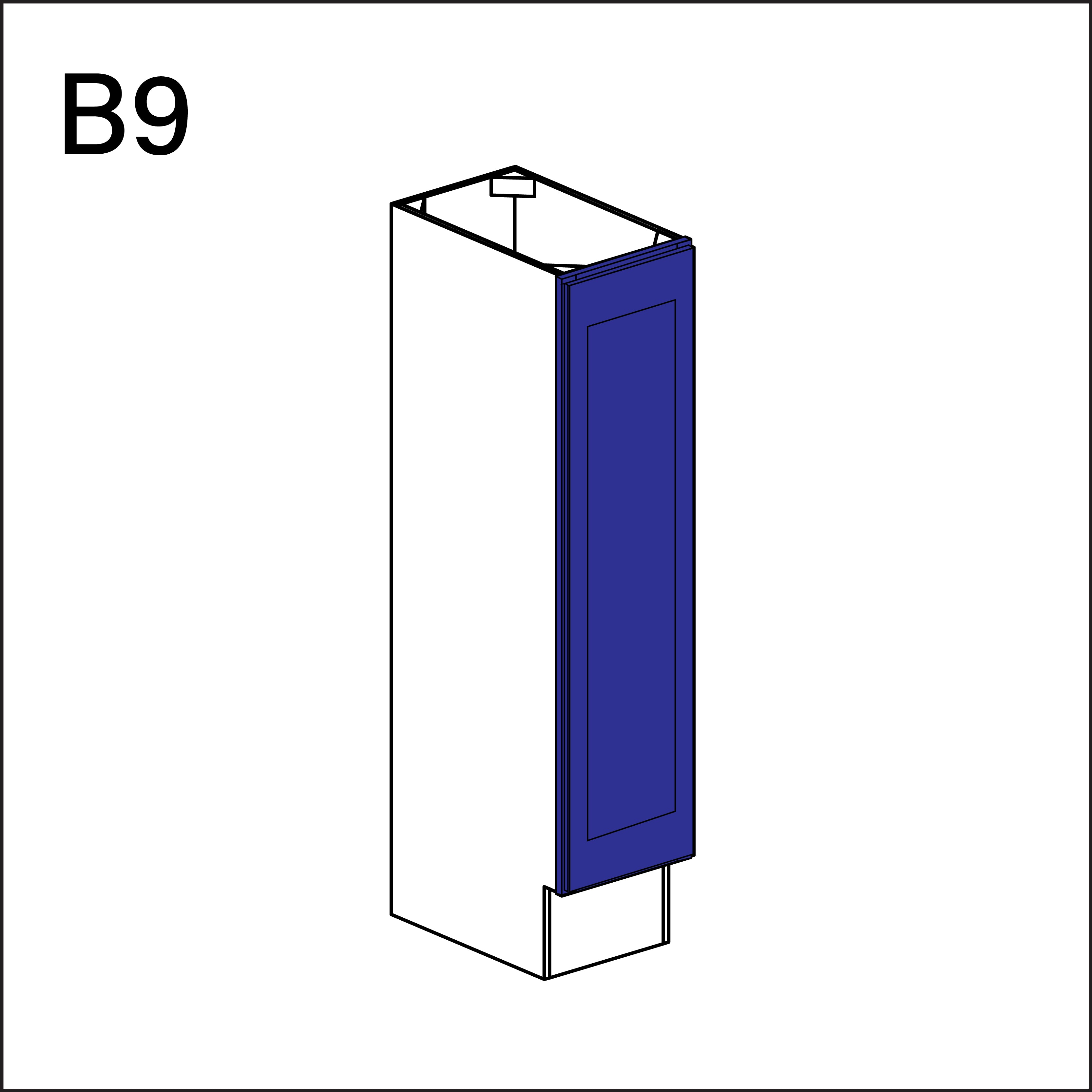 Royal Blue Shaker Single Door Kitchen Base Cabinet - 9" W x 34.5" H x 24" D