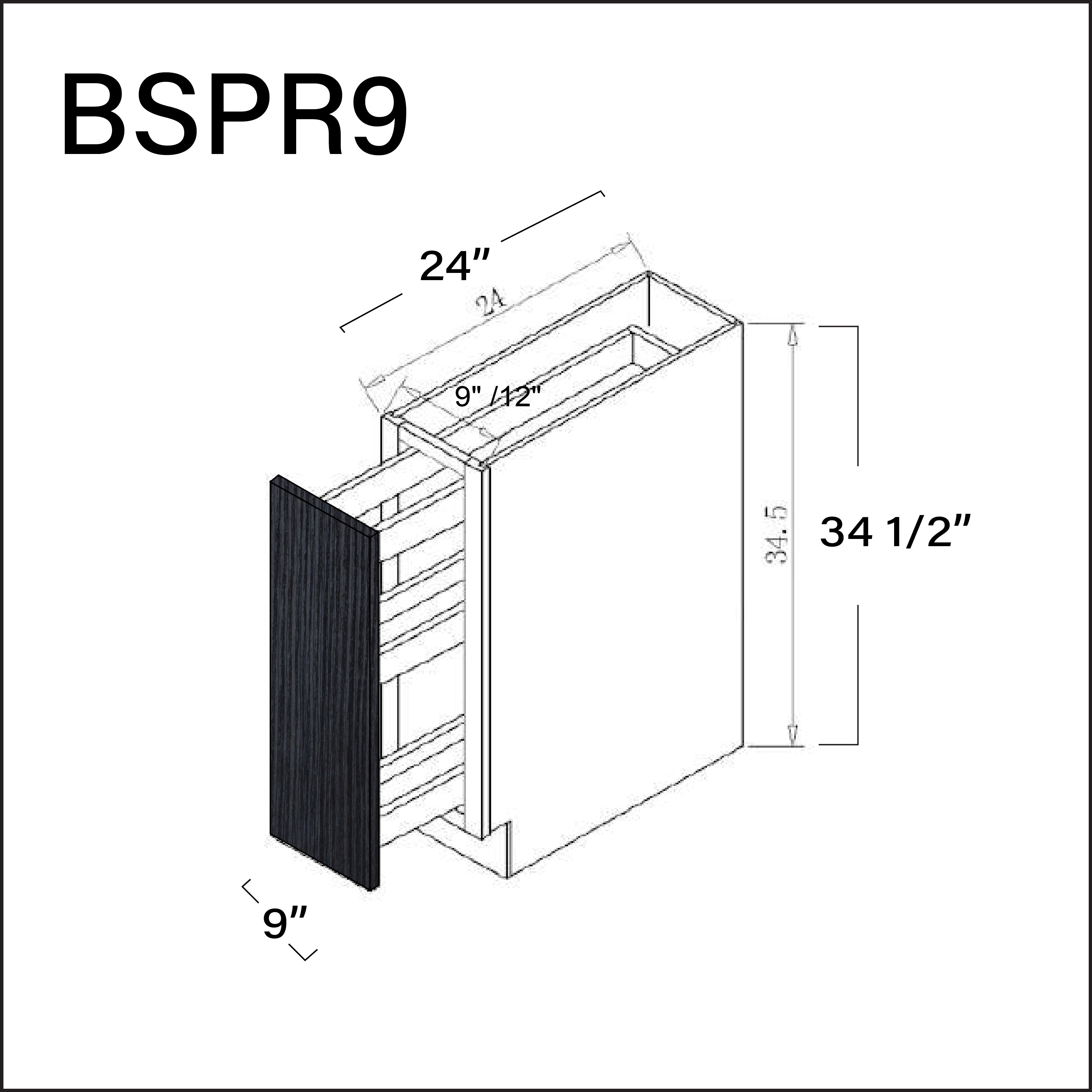 Darkwood Frameless Base Spice Rack Cabinet - 9" W x 34.5" H x 24" D