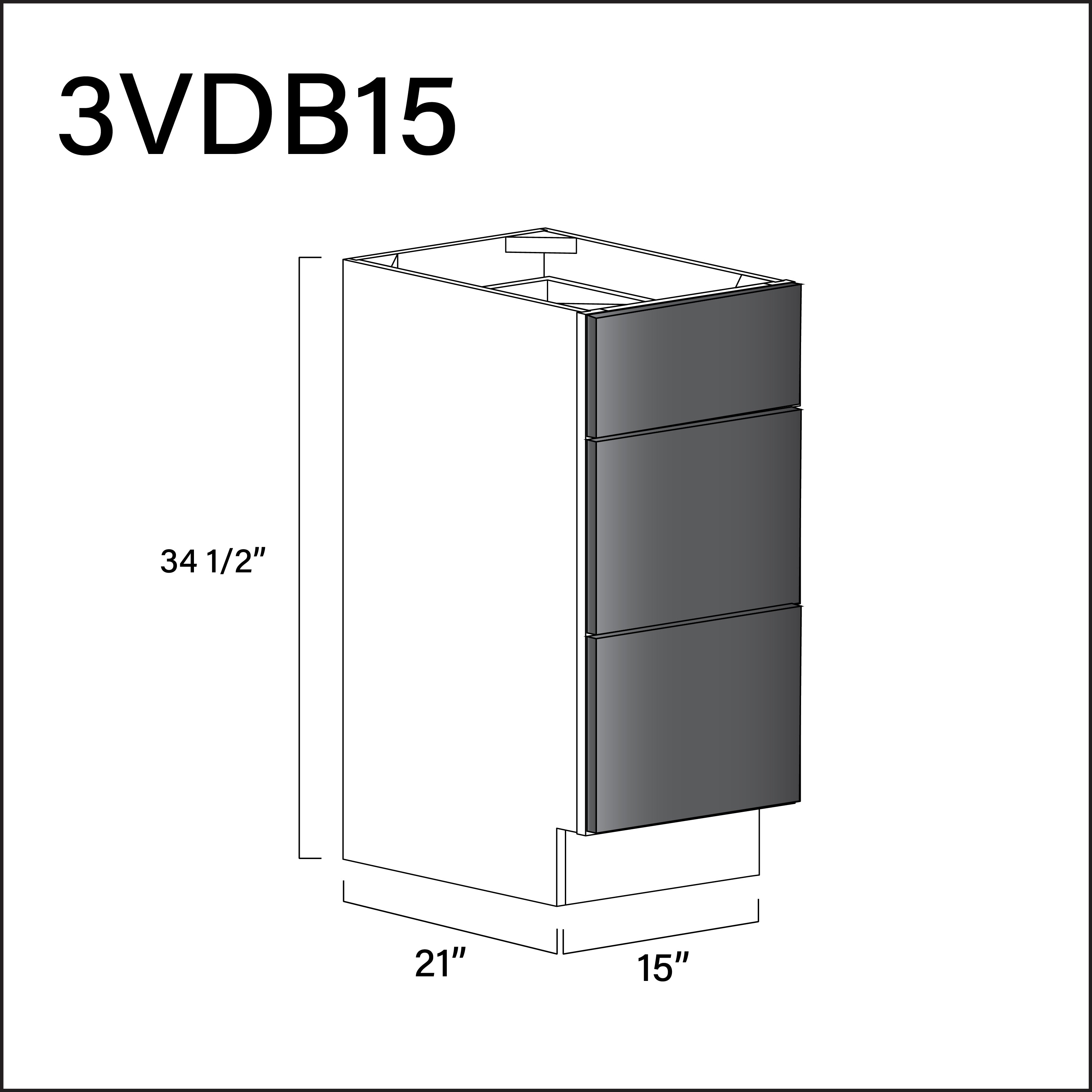 Glossy Gray Frameless Vanity 3-Drawer Storage Cabinet - 15" W x 34.5" H x 21" D