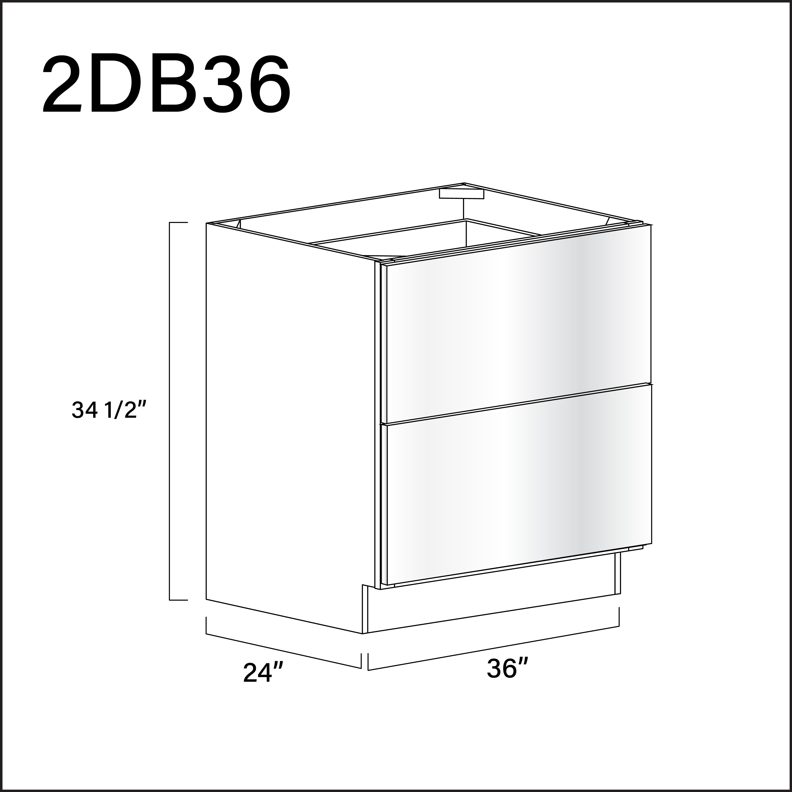Glossy White Frameless 2 Drawer Kitchen Base Cabinet - 36" W x 34.5" H x 24" D