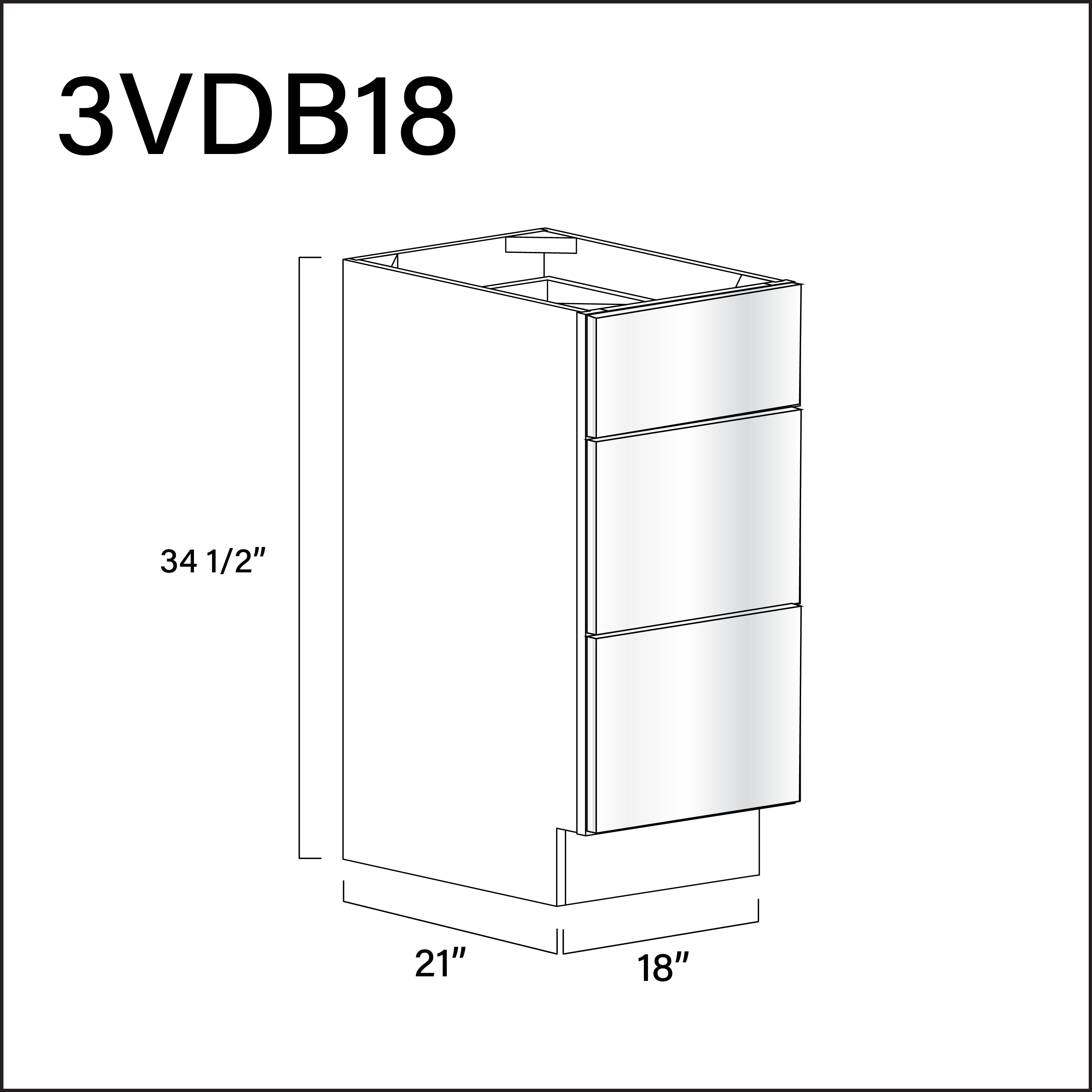 Glossy White Frameless Vanity 3-Drawer Storage Cabinet - 18" W x 34.5" H x 21" D
