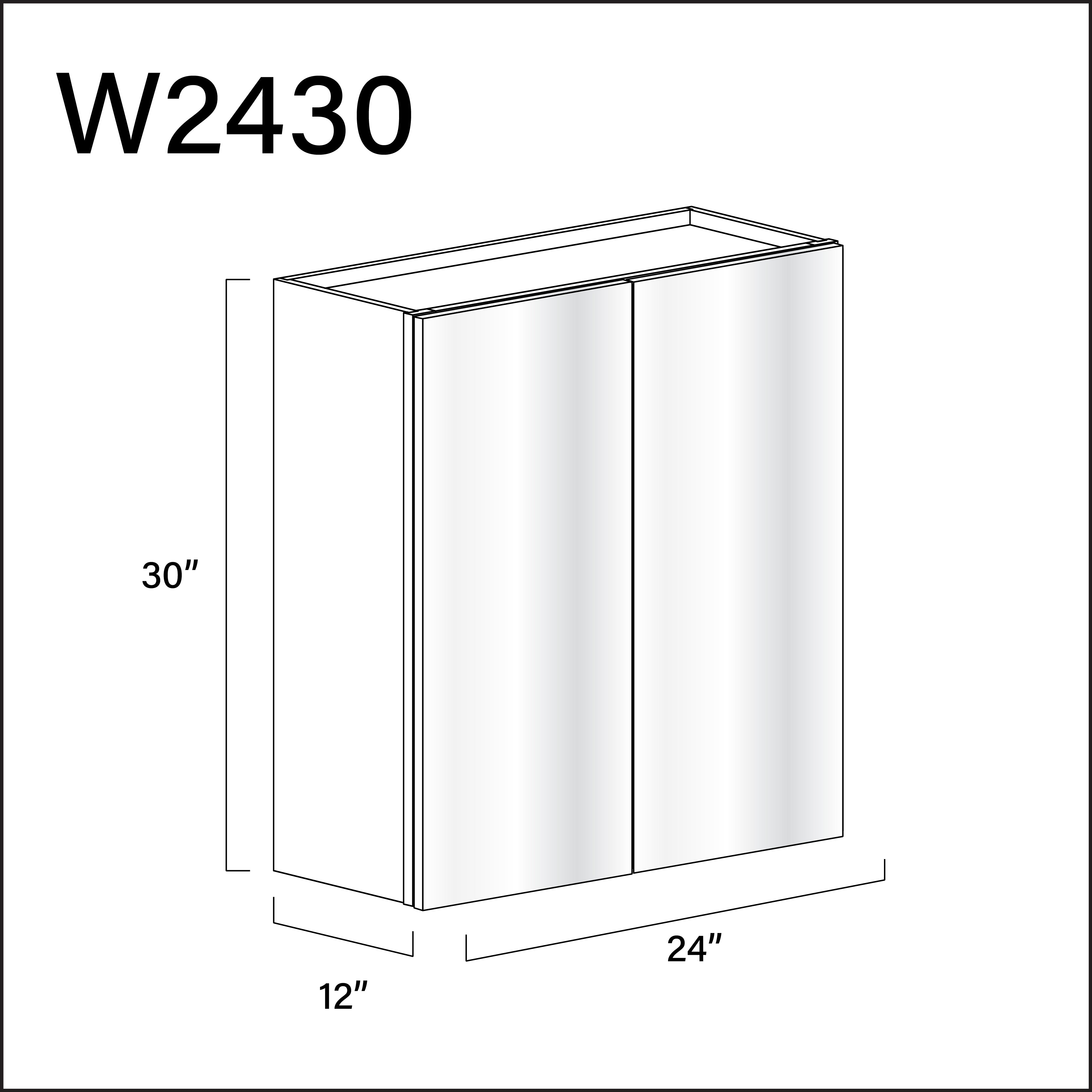 Glossy White Frameless Double Door Wall Cabinet - 24" W x 30" H x 12" D