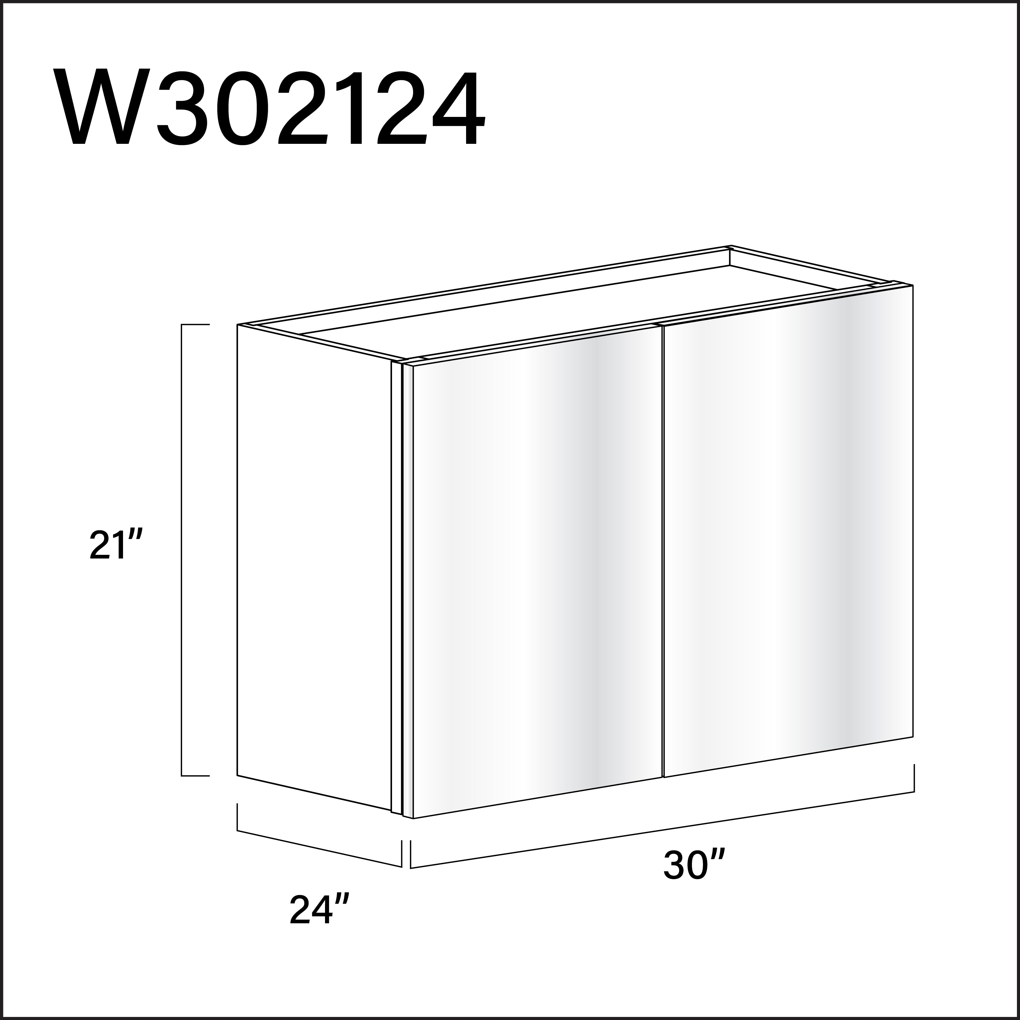 Glossy White Frameless Wall Bridge Double Door Cabinet - 30" W x 21" H x 24" D