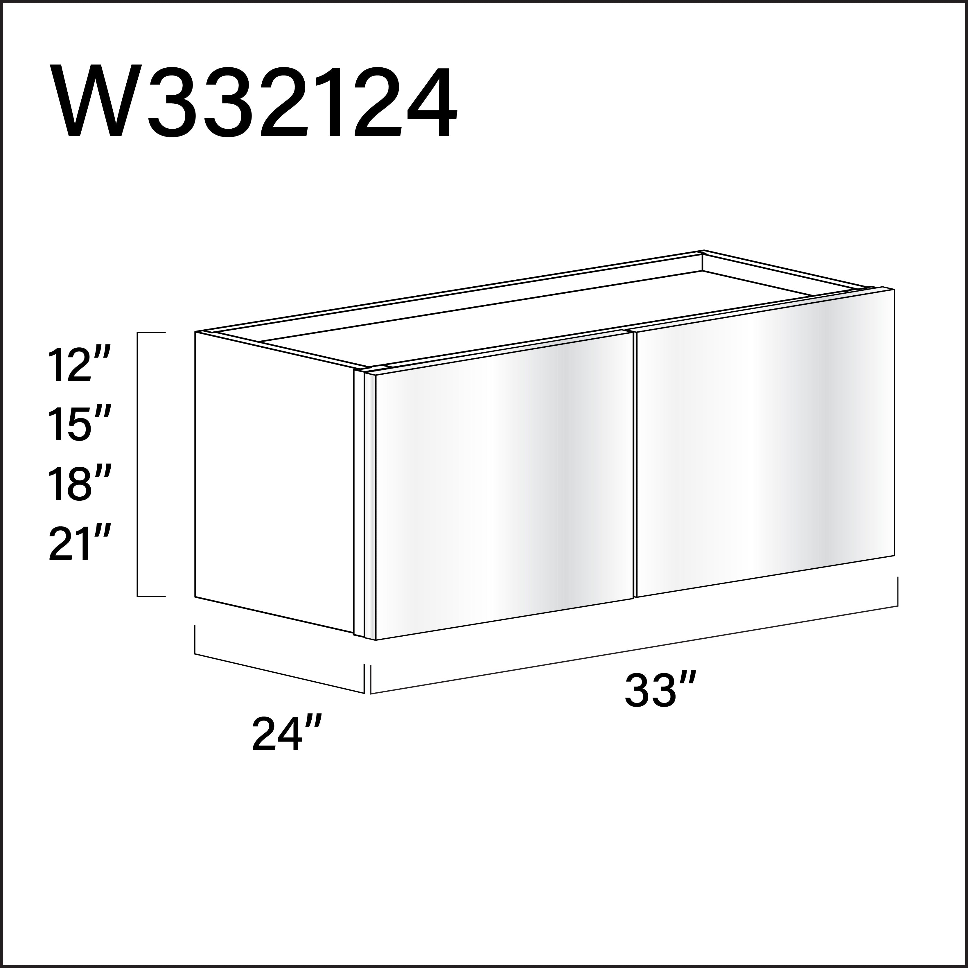 Glossy White Frameless Wall Bridge Double Door Cabinet - 33" W x 21" H x 24" D