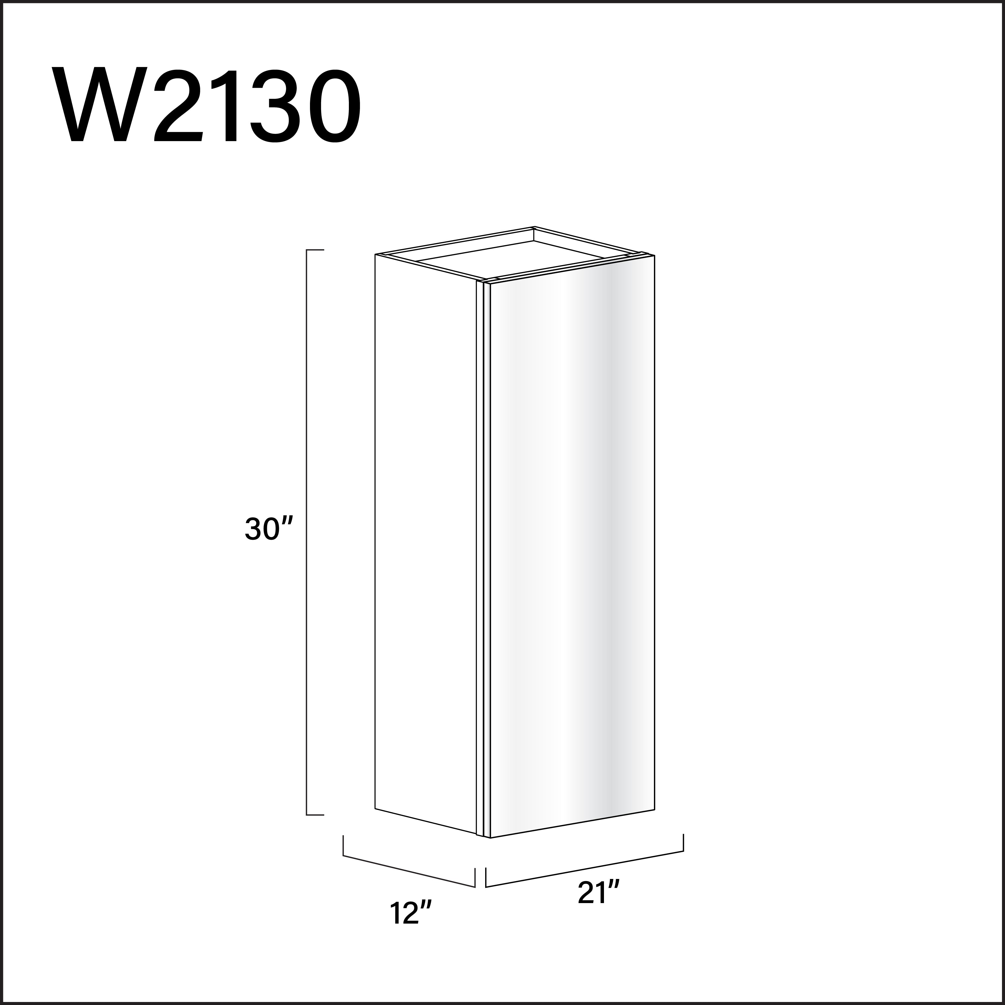 Glossy White Frameless Single Door Wall Cabinet - 21" W x 30" H x 12" D