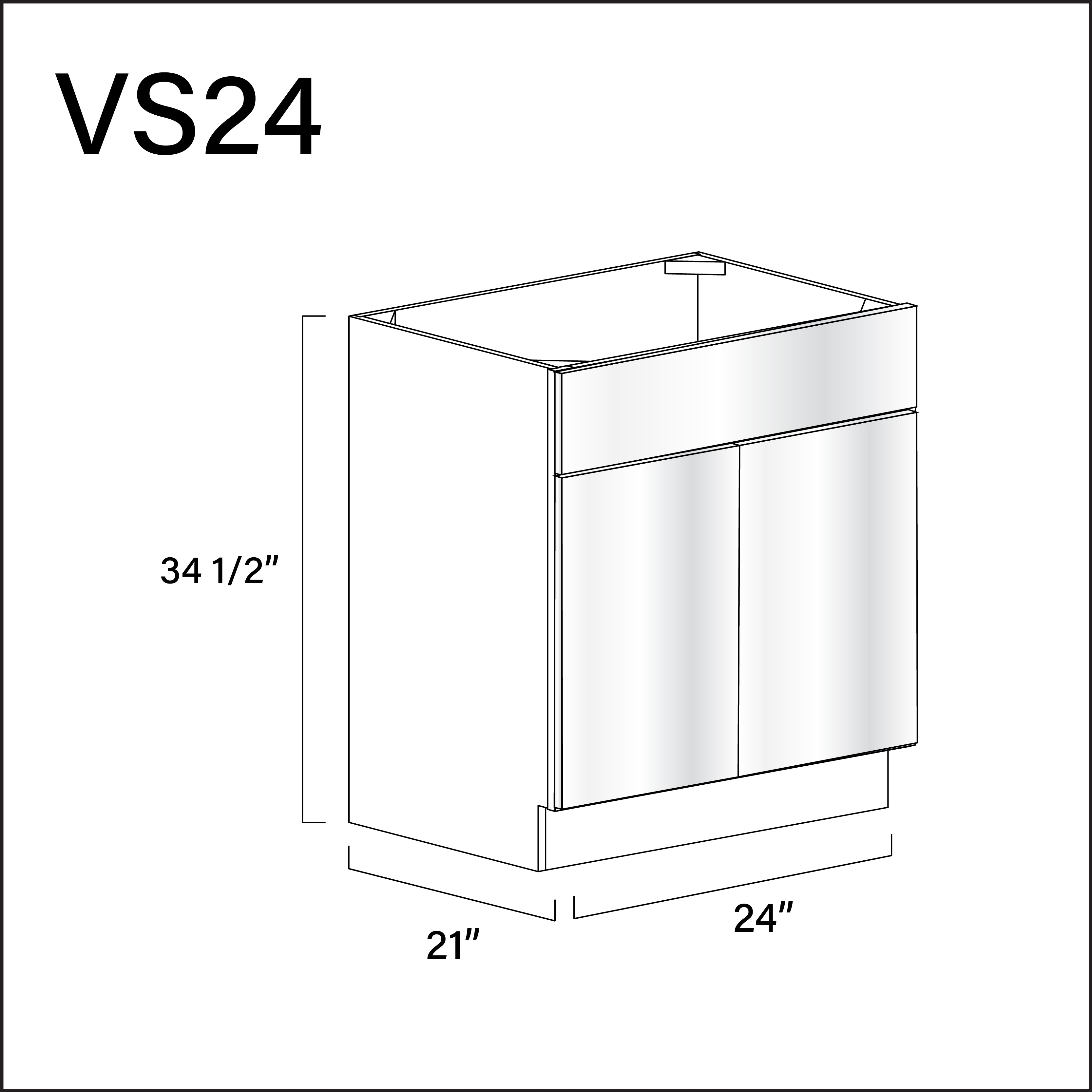 Glossy White Frameless Vanity Sink Base Cabinet - 24" W x 34.5" H x 21" D