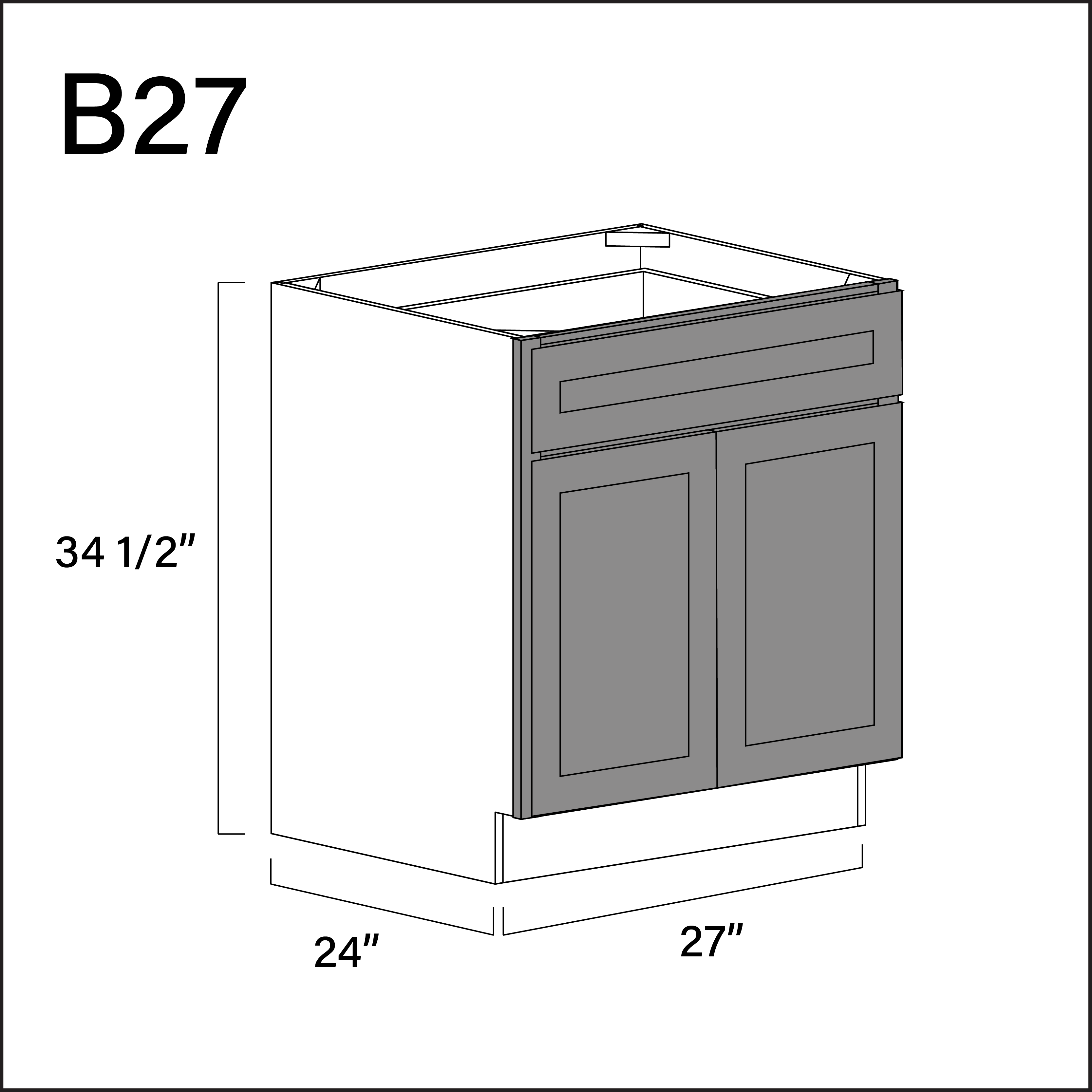 Earth Grey Shaker 1 Drawer 2 Door Kitchen Base Cabinet - 27" W x 34.5" H x 24" D