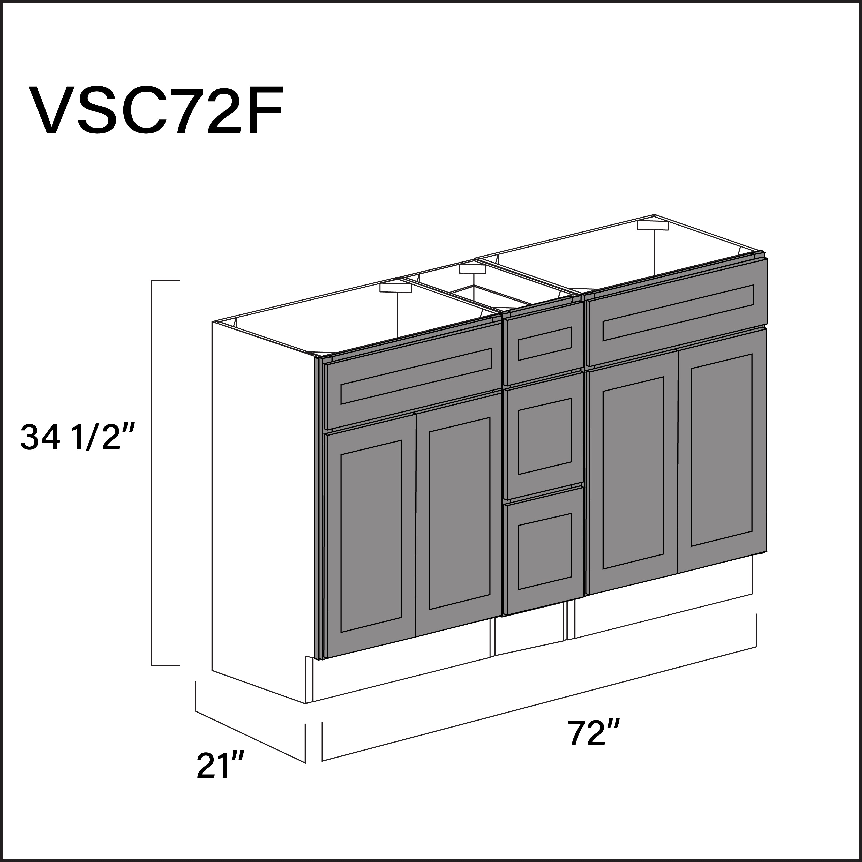 Earth Grey Shaker Vanity Sink Combo F Cabinets - 72" W x 34.5" H x 21" D