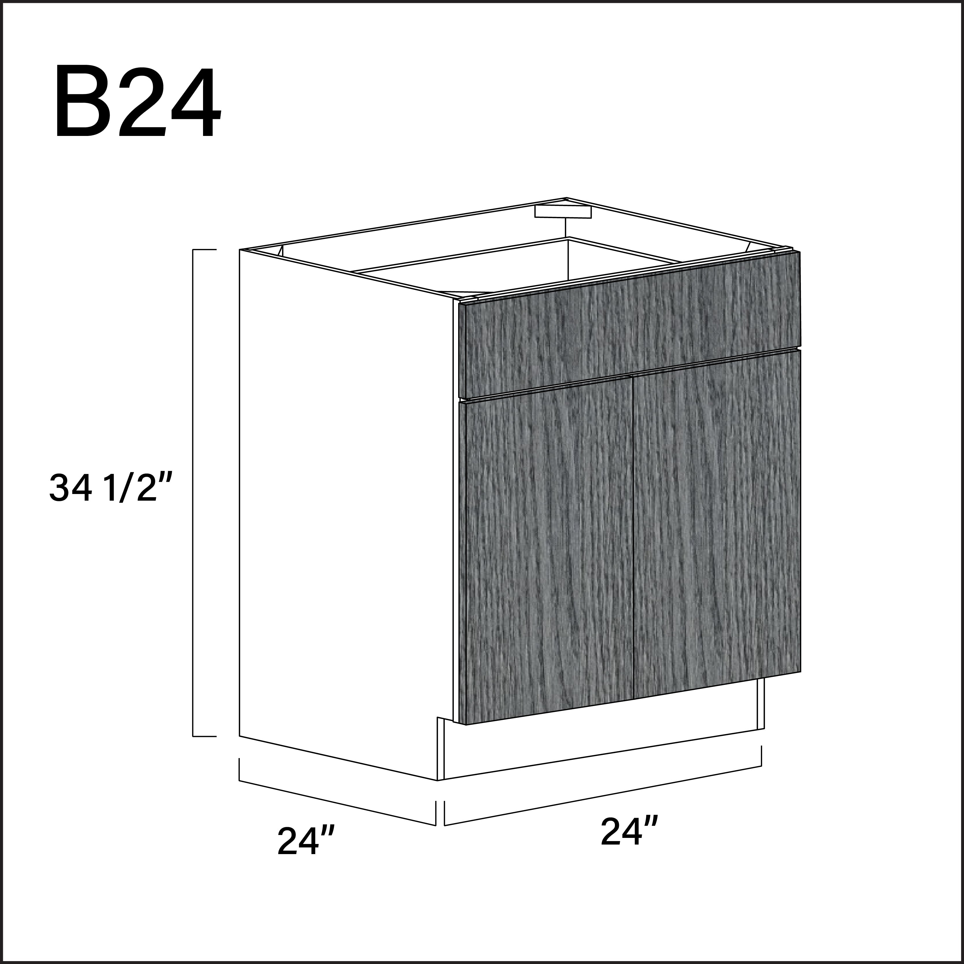 Textured Gray Frameless 1 Drawer 2 Door Kitchen Base Cabinet - 24" W x 34.5" H x 24" D