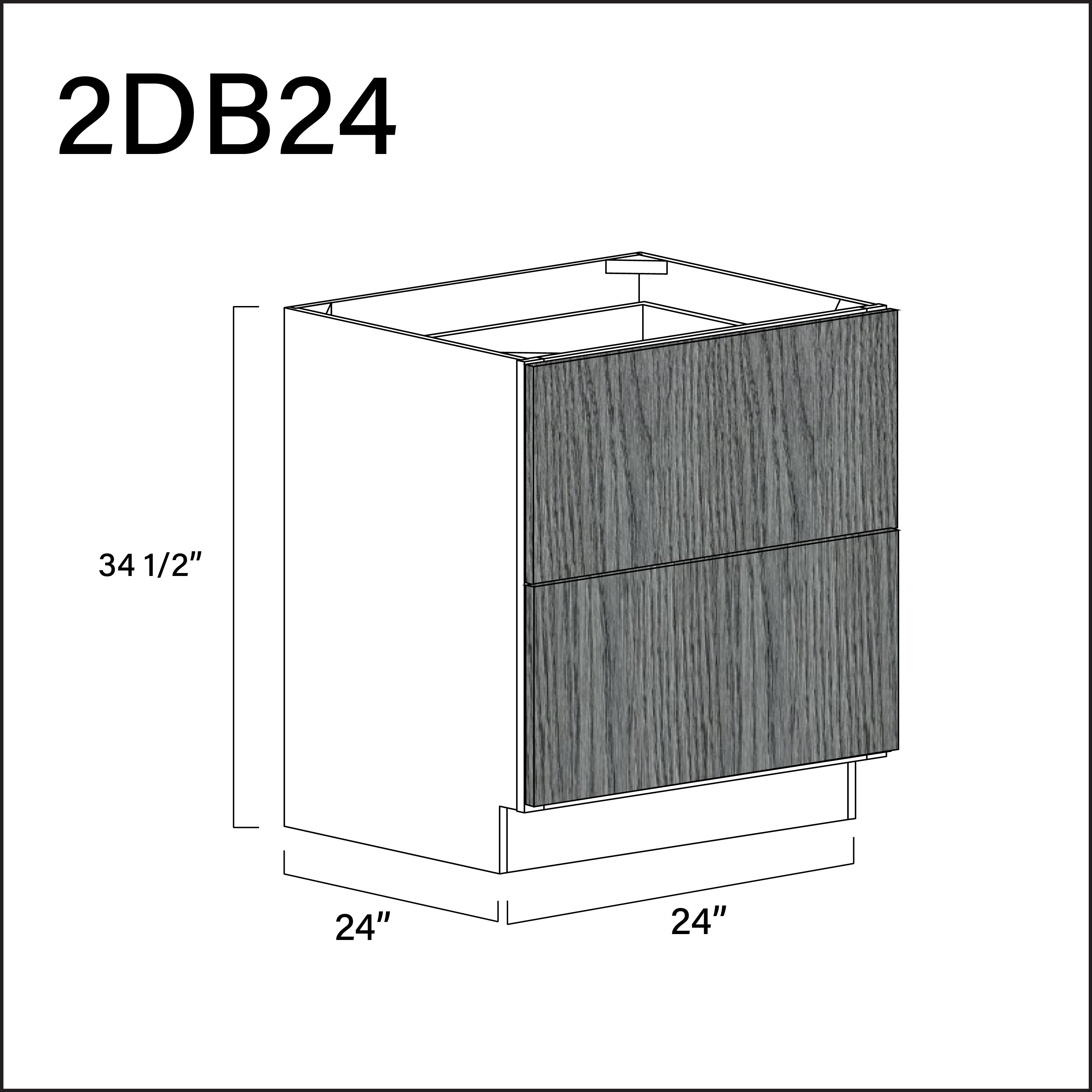 Textured Gray Frameless 2 Drawer Kitchen Base Cabinet - 24" W x 34.5" H x 24" D