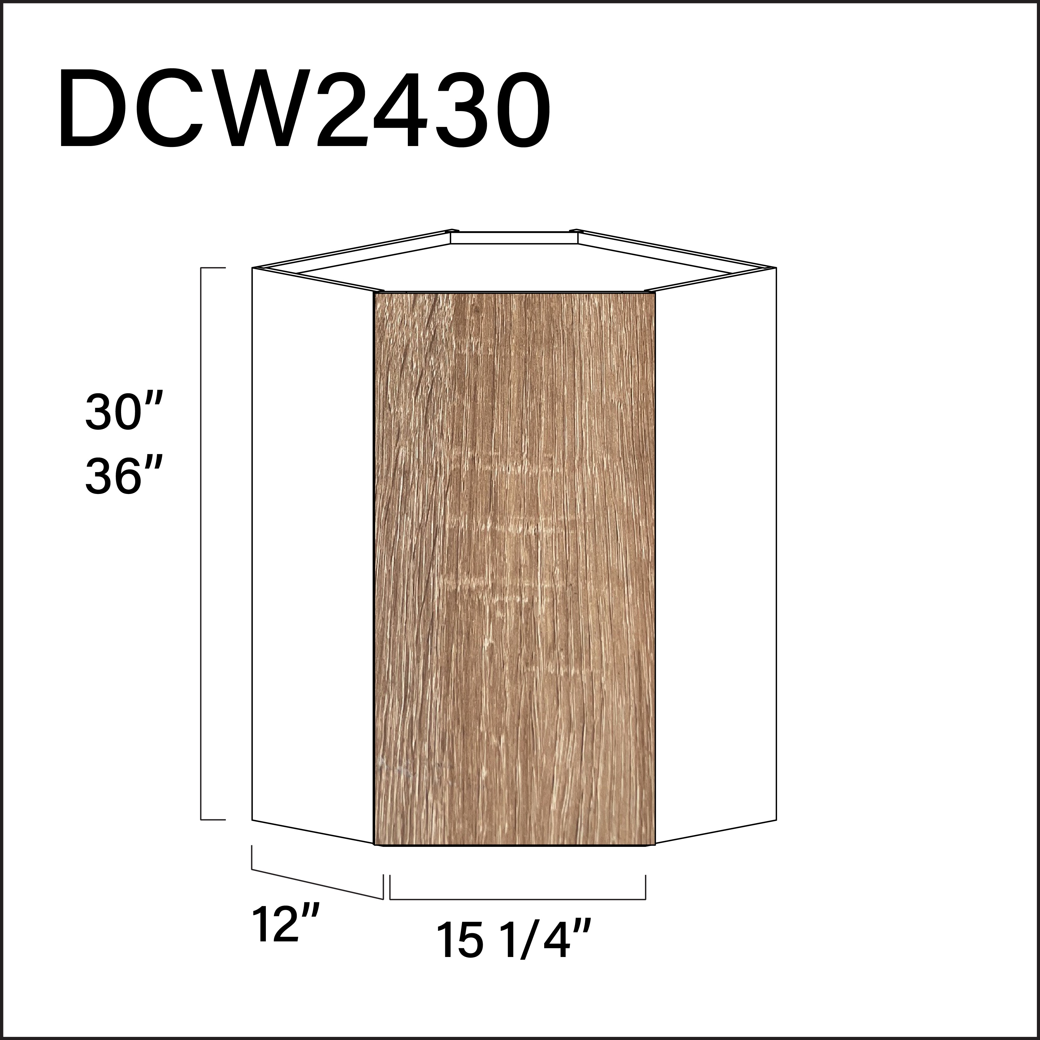 Textured Oak Frameless Diagonal Wall Corner Cabinet - 24" W x 30" H x 12" D