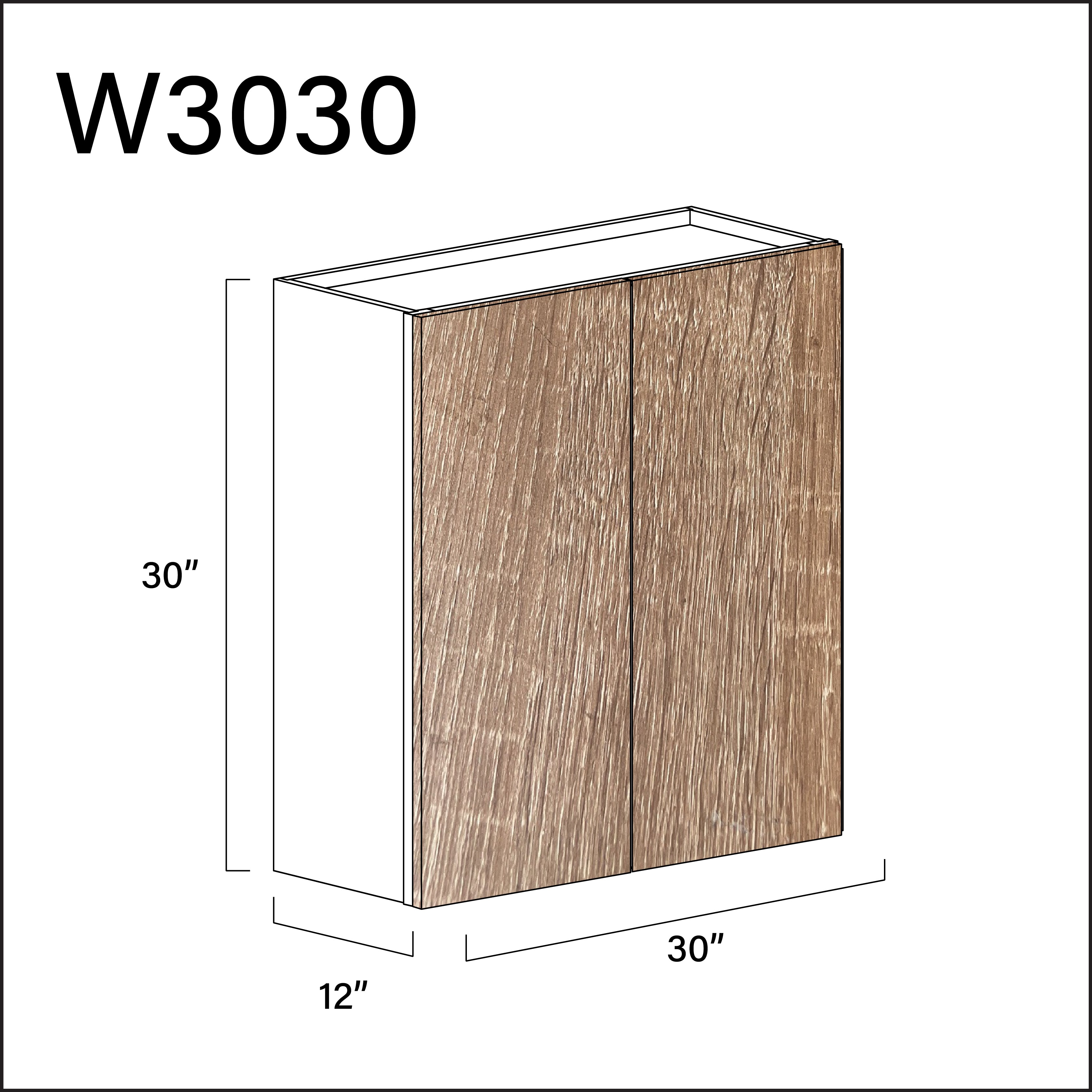 Textured Oak Frameless Double Door Wall Cabinet - 30" W x 30" H x 12" D