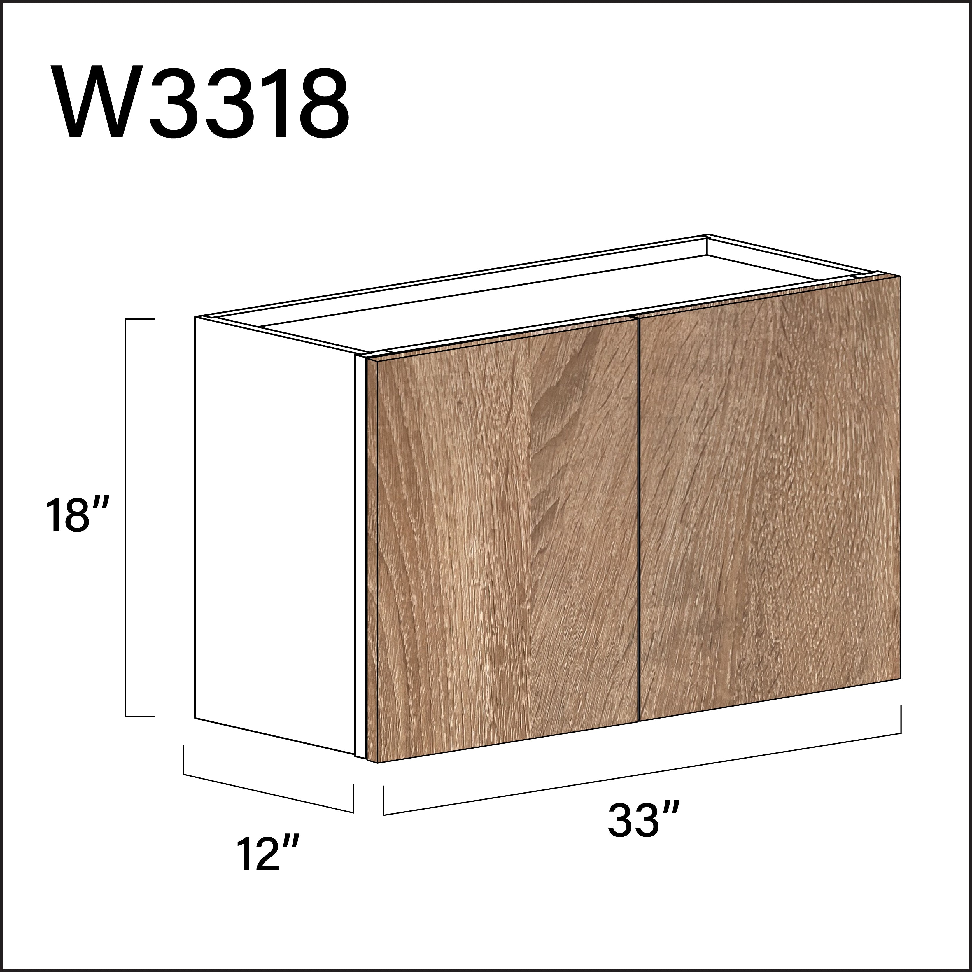 Textured Oak Frameless Double Door Wall Cabinet - 33" W x 18" H x 12" D