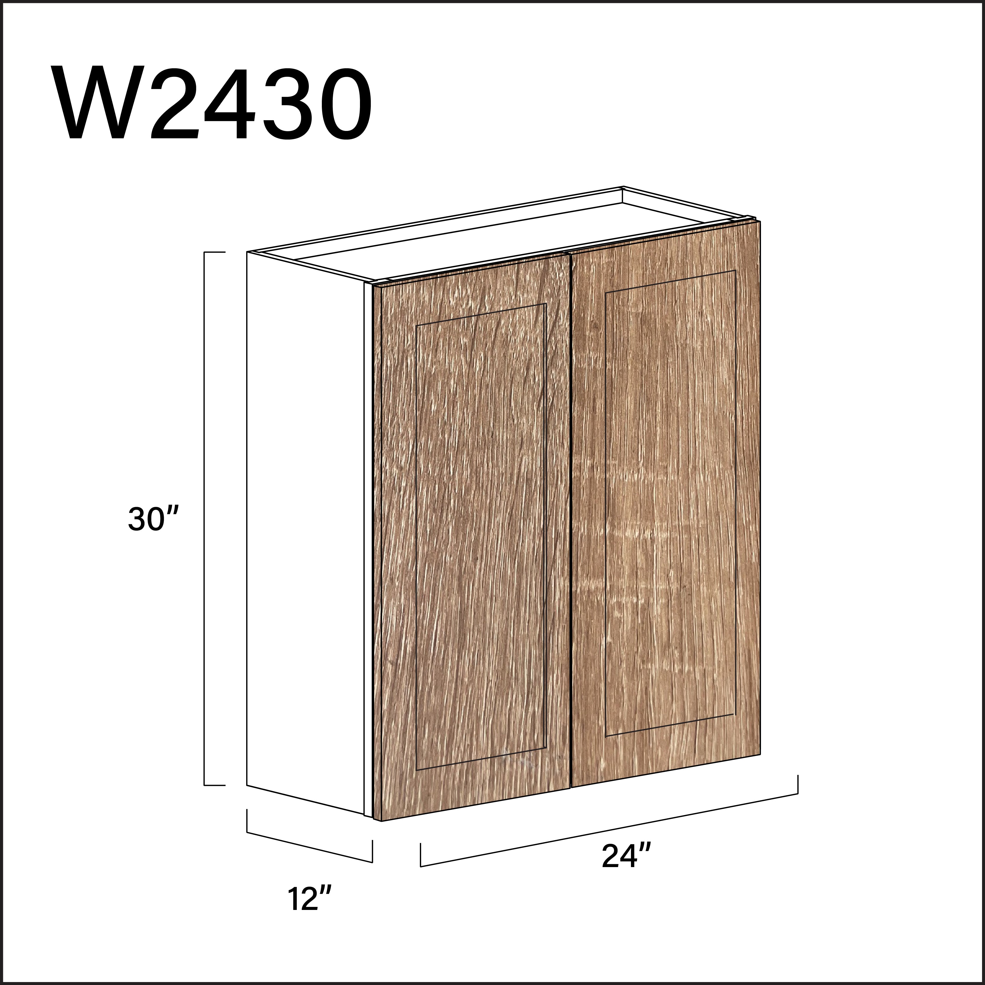 Textured Oak Shaker Double Door Wall Cabinet - 24" W x 30" H x 12" D