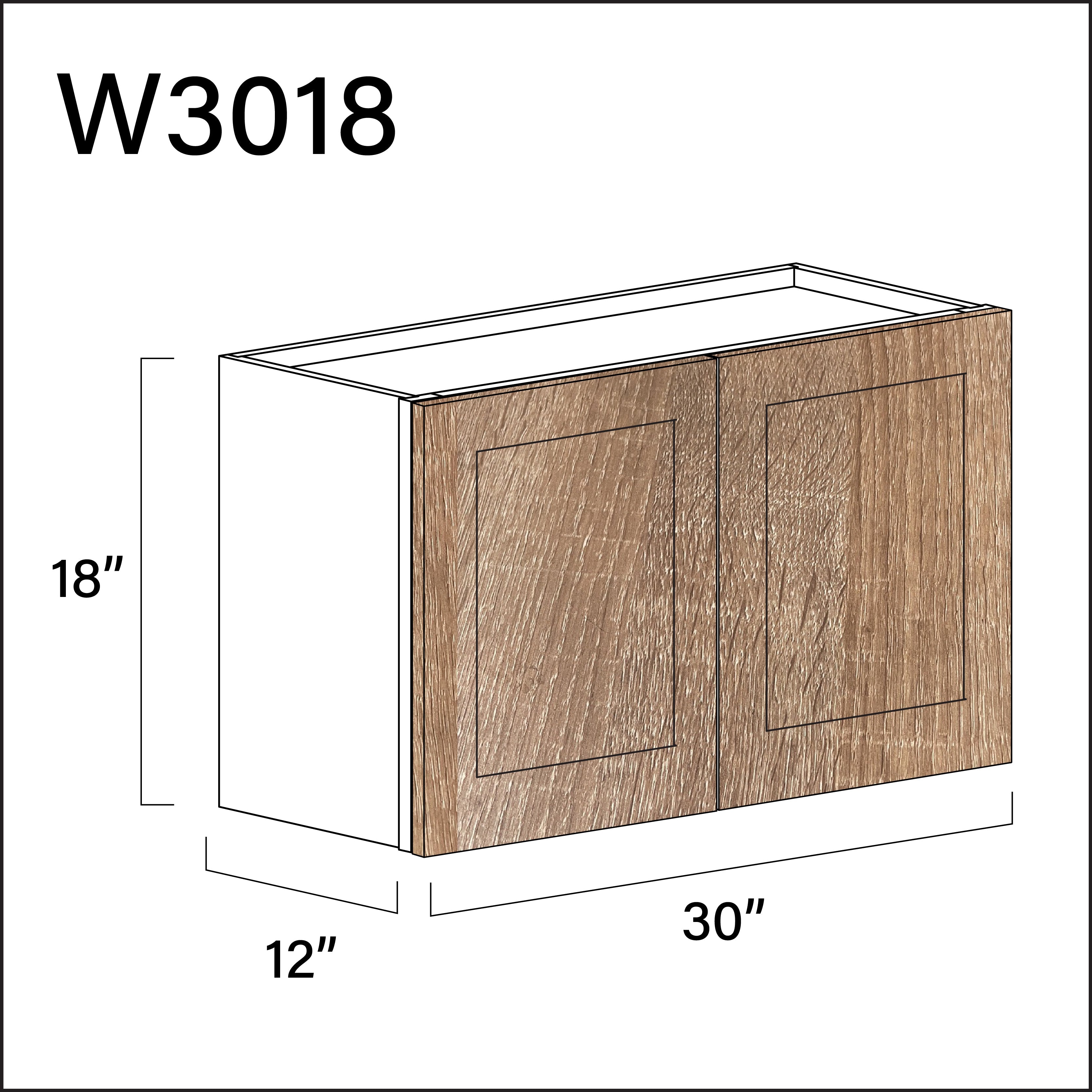 Textured Oak Shaker Double Door Wall Cabinet - 30" W x 18" H x 12" D