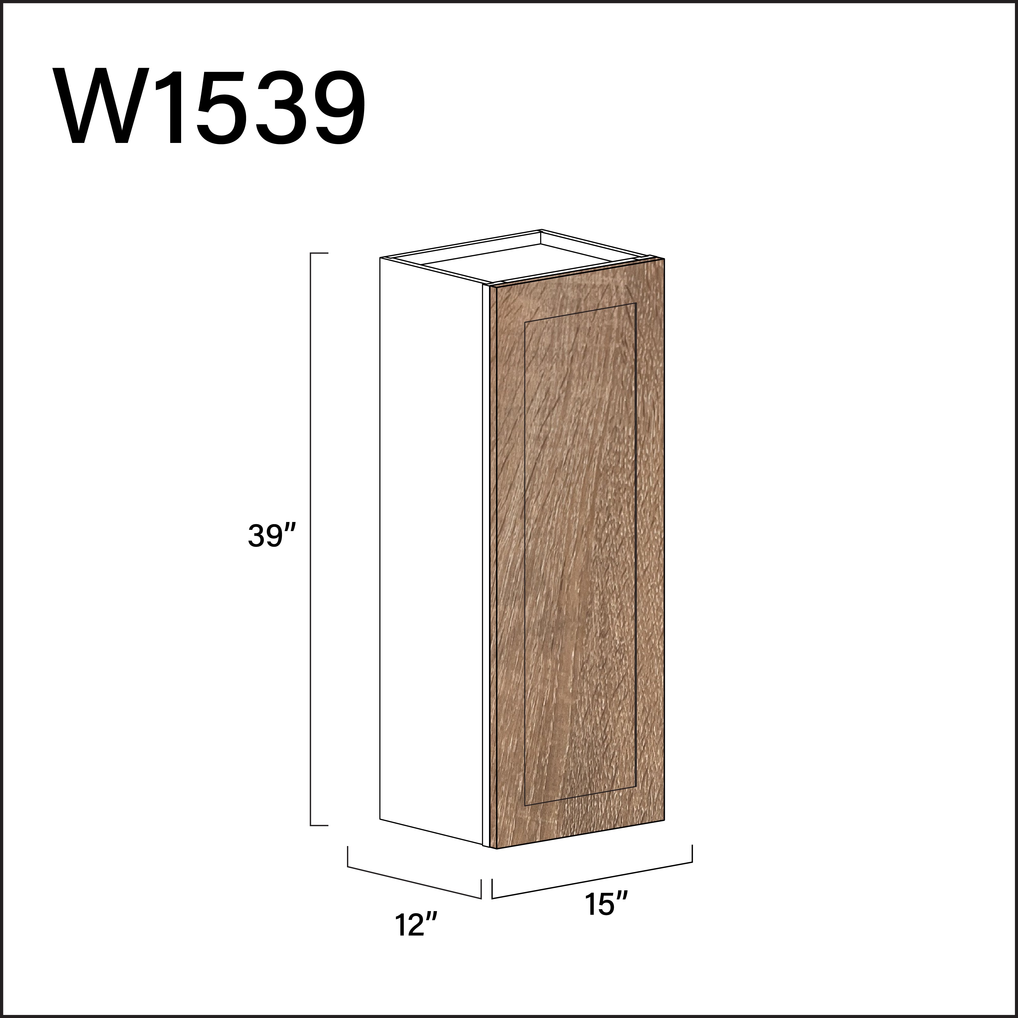 Textured Oak Shaker Single Door Wall Cabinet - 15" W x 39" H x 12" D